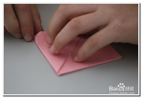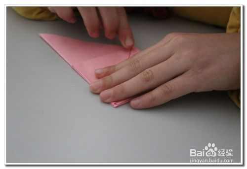 5、如下图所示,再次对折成的角,进行朝内对折。