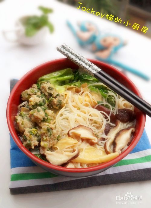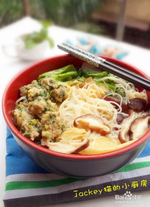 米粉浸泡发透,生菜和腐皮洗净,鲜冬菇切厚片,小葱和肉馅都准备好。