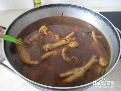 40分钟后,用筷子扎一下,轻松扎透,鸡爪就熟透了,关火