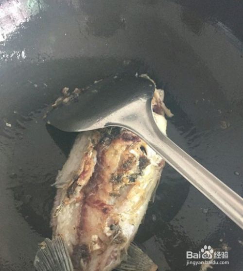 入油煎 至两焦黄,有鱼香味,倒入开水或冷水