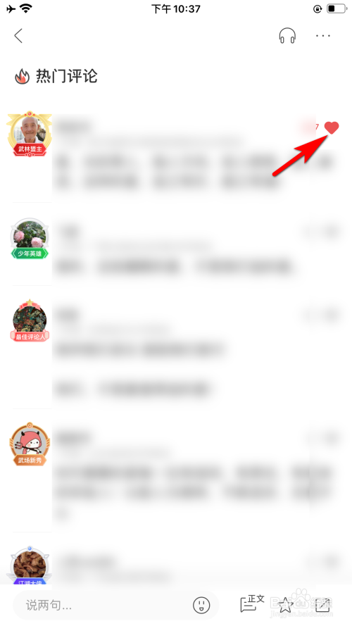在评论列表中,点击目标评论内容右上方点赞的心形图标。