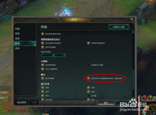 如果想与所有人聊天,点击设置界面中的“界面”后,用鼠标往下方搜索,看见