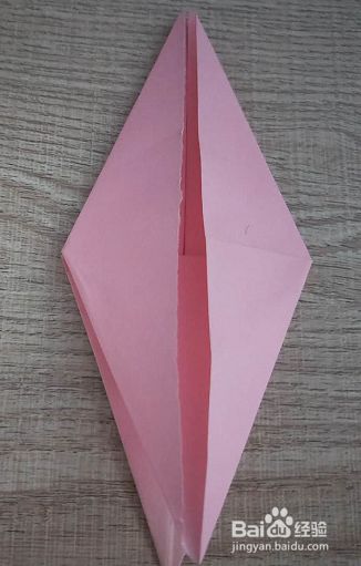 将上一步的折好的纸,从中间向左右两边拉,如图一。拉开后悔变成两个重叠的棱形,如图二所示