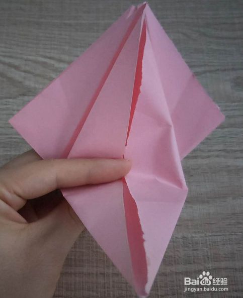 首先准备一张正方形的折纸纸,两两对折如图一和图二,变成一个正方形的时候,将正方形沿着对角线对折(此步骤主要是折出折痕,方便后面的操作)