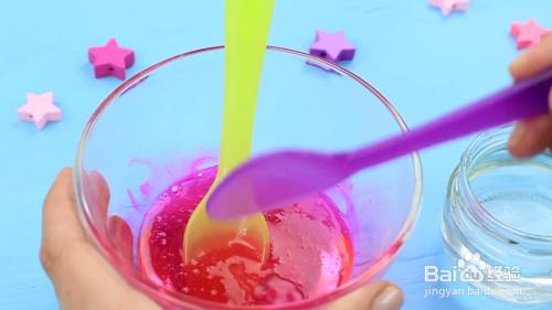 把玩具小星星放入里面搅拌均匀,按照通用的方法制作不同的颜色。