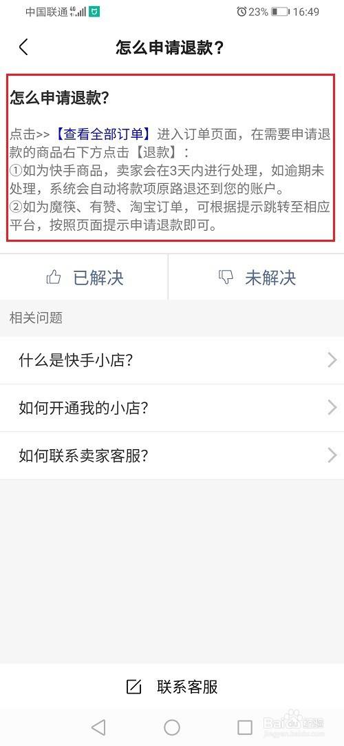第一步快手申请退款可以在快手小店我的订单中进行退款,如果是快手商品,商家会在3天内处理,其他商品会到跳转到对应界面退款