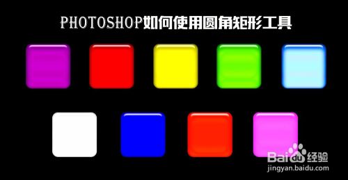 点击【圆角矩形工具】,点击上方【形状图层】图标,设置圆角量为20,点击样式旁边的小三角,通过选择不同的样式可以制作出不同样式的圆角矩形方块;