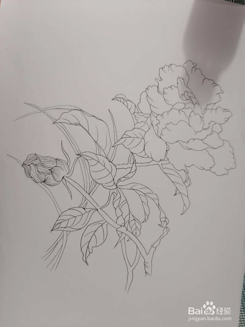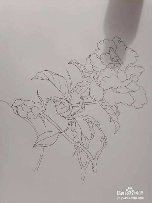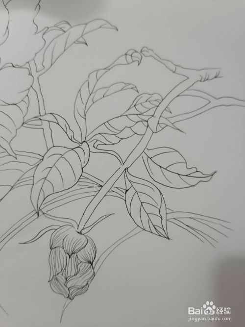 继续画花瓣和叶子以及另一朵小玫瑰花,