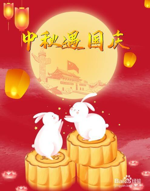 最后我们加上主题文字,中秋遇国庆,让文字更加凸显,可以使用金色。