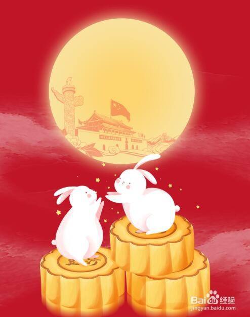 在月亮中,我们放上天安门,国旗,华表的元素插画,让双节气氛更浓。