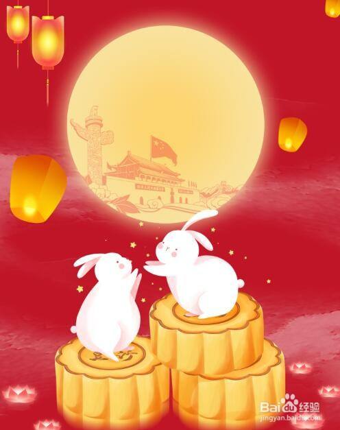 画几个月饼放在下方,然后再画两只可爱的兔子,凸显中秋节。