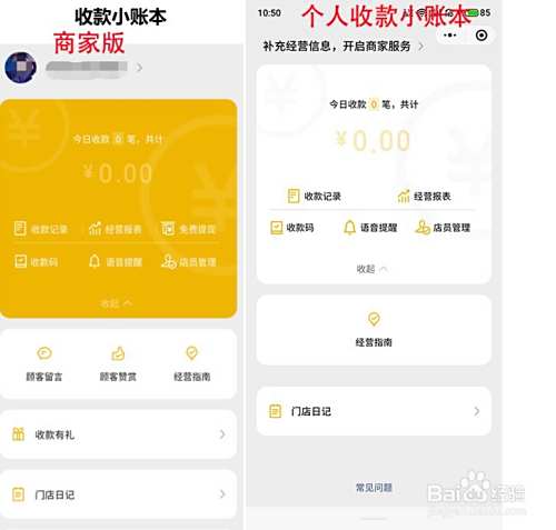 收款小账本界面不同