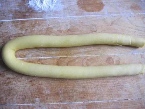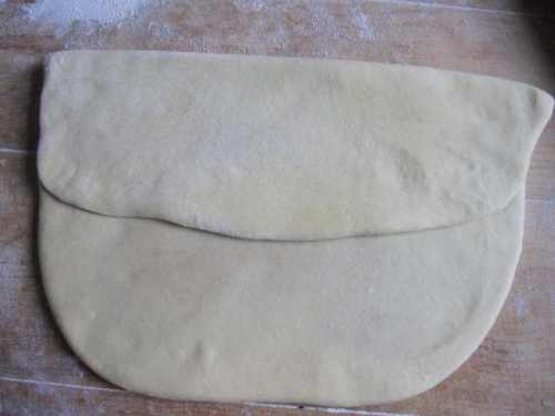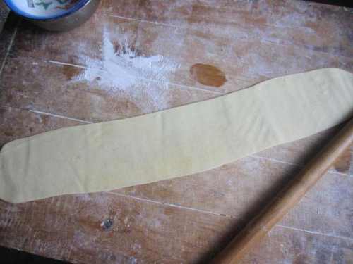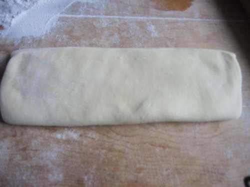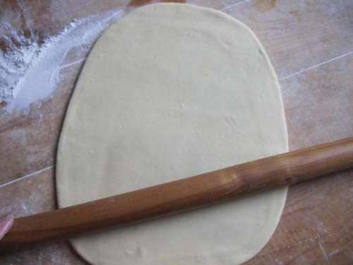 7顺着面皮再次擀开,再重复以上步骤擀两到三次