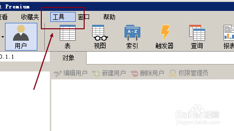 首先打开navicat,点击工具按钮,如图: