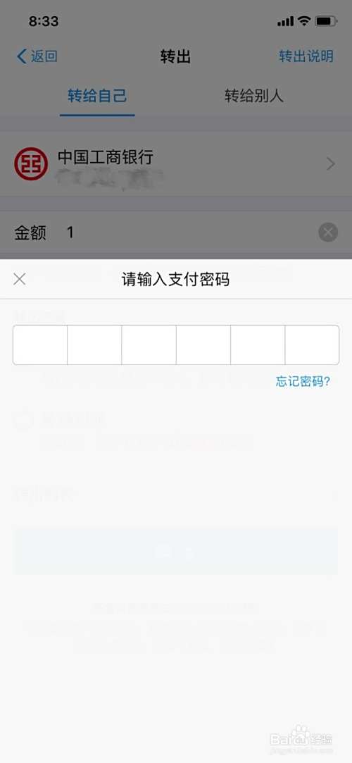 最后,会弹出一个支付密码的对话框,输入支付密码,并点击“确认转出”,即可转出到银行卡里。