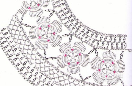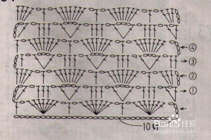 下面再按图解来编织,是四行一个完整花型,我一共钩了三个完事花型后分袖的,腋下每边加10针