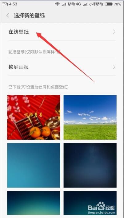 在打开的“选择新的壁纸”页面中,点击“在线壁纸”菜单