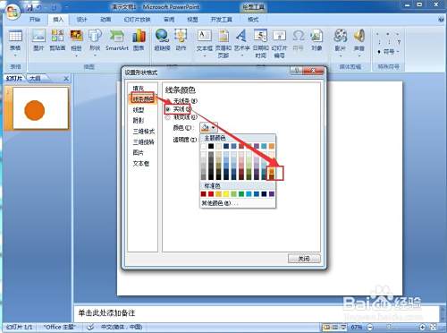 点击线条颜色,选择实线,选择橙色;