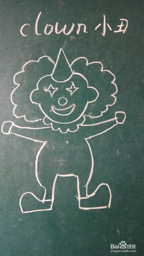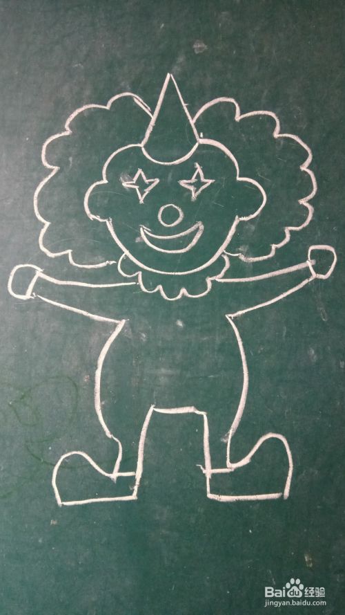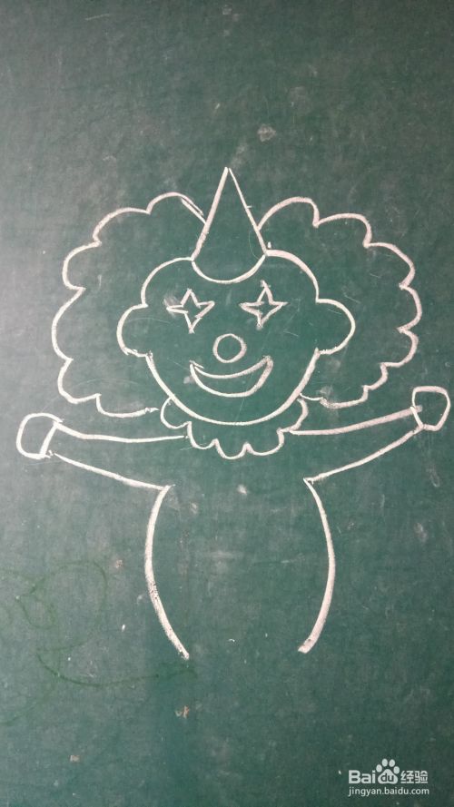 画出小丑的身体和两个胳膊,还有两条腿,小丑画好了。