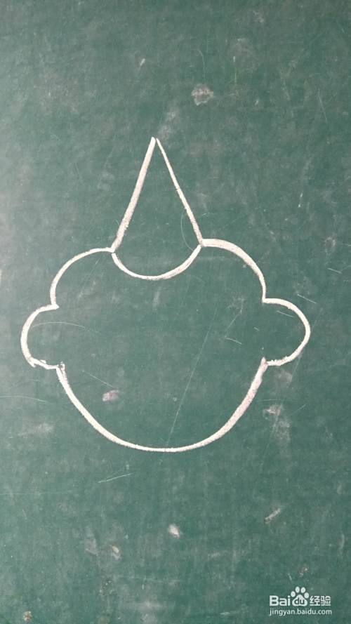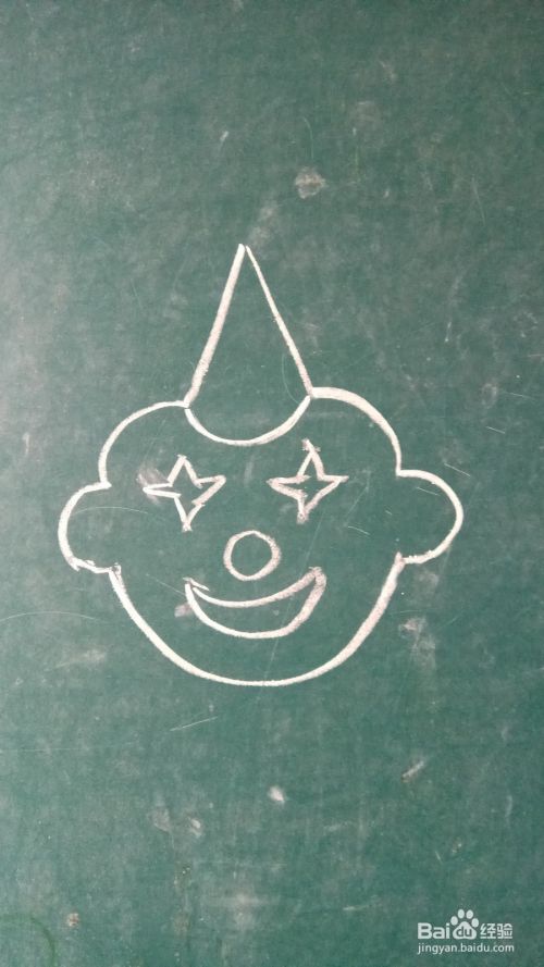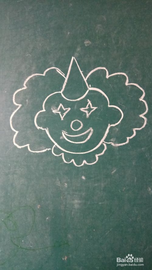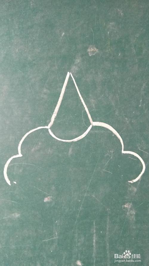 在黑板上画一个圆锥的形状,这是小丑的帽子。