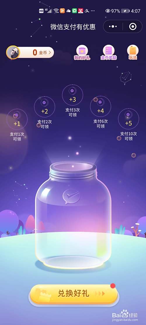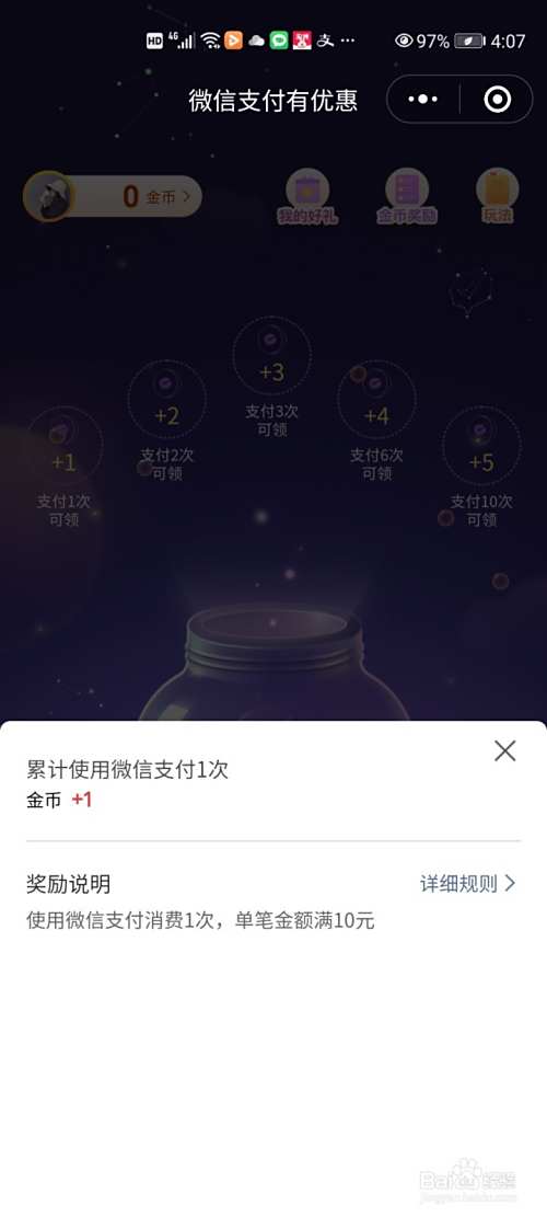 微信每次支付达到规定次数就可以领取相应金币