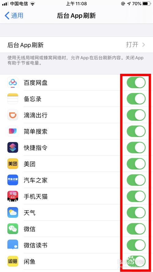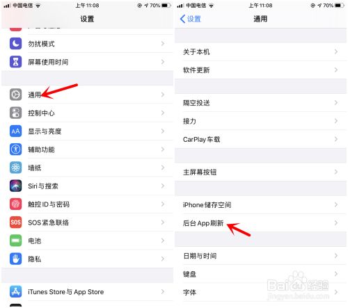 在设置面板选择 通用 ,然后选择 后台App刷新