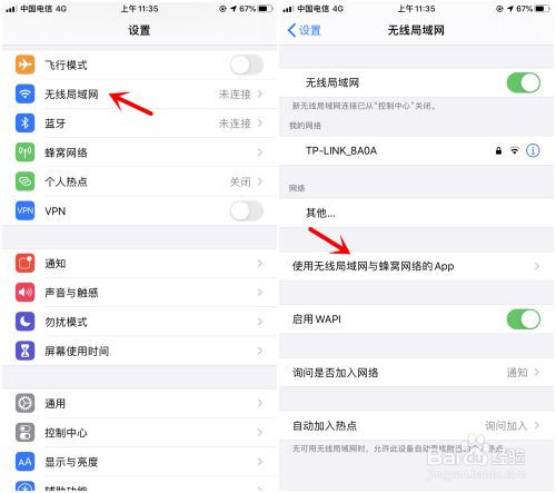 在设置面板选择 无线局域网 —— 再选择 使用无线局域网与蜂窝数据的App
