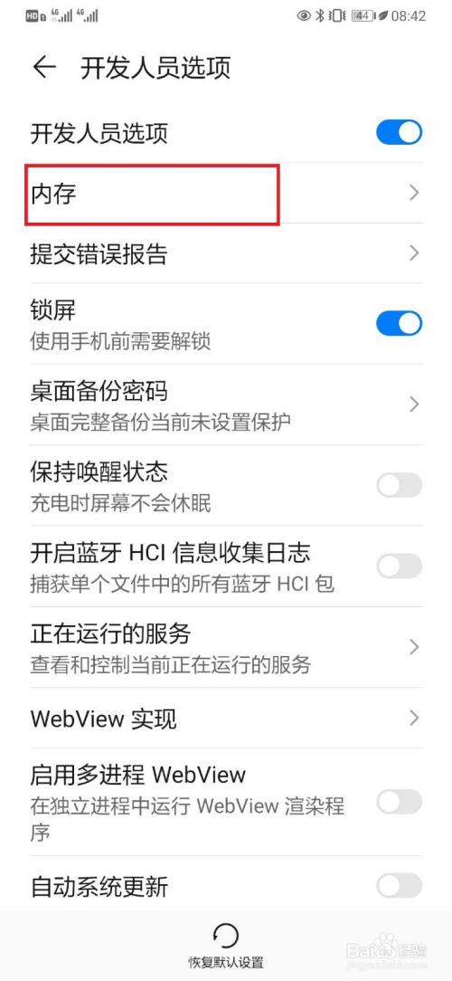 通过华为手机开发人员选项查看手机内存使用情况的操作流程。