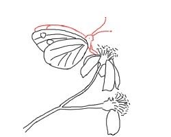 最后,勾画出蝴蝶的触角和翅膀的另外一边。