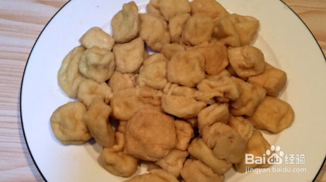 冷却后的油豆腐把多余的水分挤出,待用。
