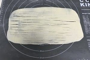 硅胶垫刷上一层薄薄的花生油,取一个小面团,用擀面杖擀成长方形薄片,尽量擀得薄些,接着给面片刷上一层花生油,均匀的撒上少许盐。