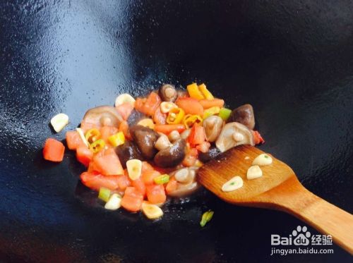等待西红柿炒的很软成糊状时,下入香菇,继续炒。