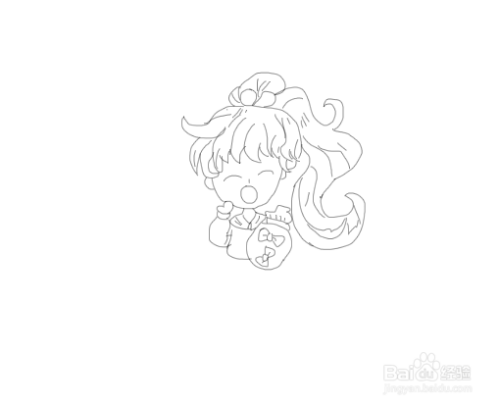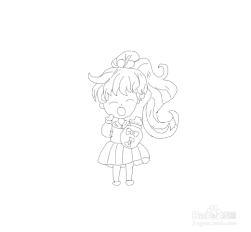 再在身体的右侧再画出女孩的手里面的糖果盒,如图所示: