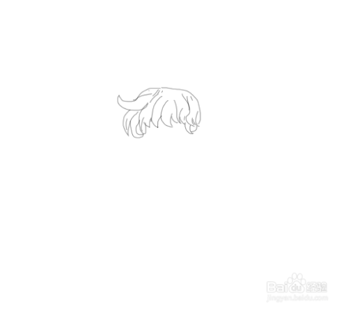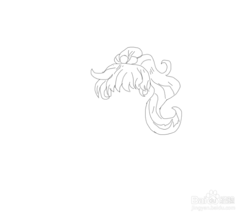 先画出女孩的头发造型,然后再在头发上画出发丝及额头前面的刘海,如图所示:
