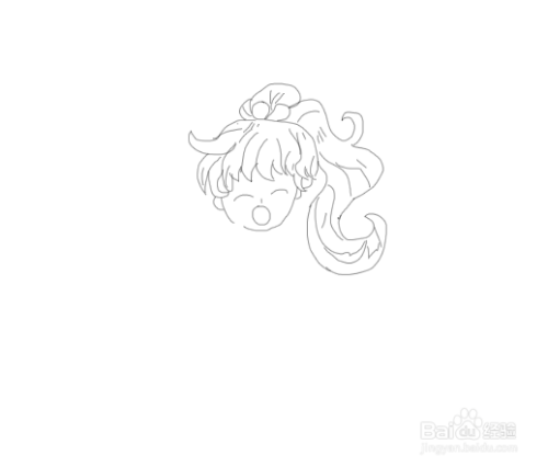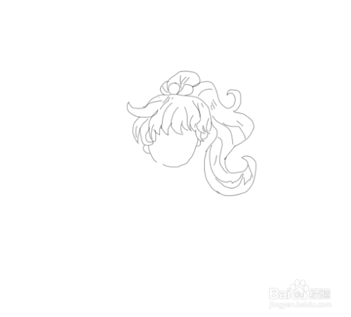 画好头发之后再在头发的基础上再画出女孩的面部,然后在面部上画出女孩的两只耳朵,如图所示: