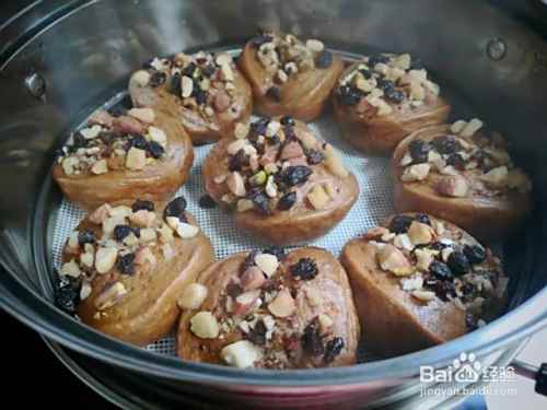 馒头摆放在蒸屉布上,调中火蒸15分钟左右,关火焖3分钟即可。
