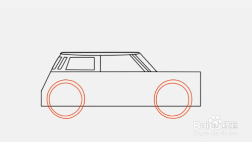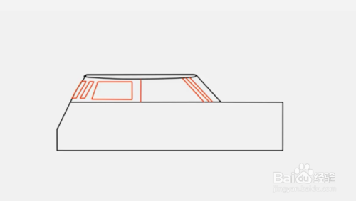 这样车轮廓就有了。在原来小长方形的位置再画几条斜线和几个长方形,作为车窗。