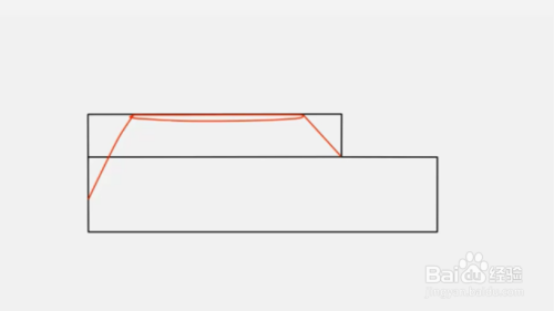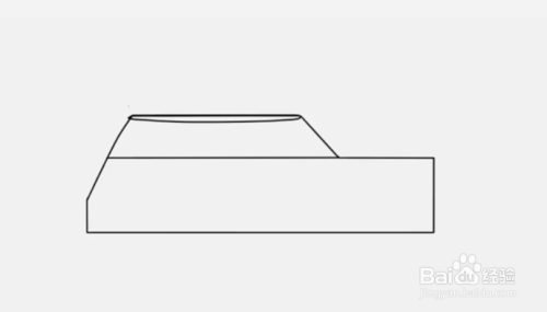 在上面那个长方形的顶端画一个扁扁的椭圆,用一条斜线将椭圆右端与小长方形的右下角相连,用另一条斜线将椭圆左端与大长方形左边线的中下段相连。