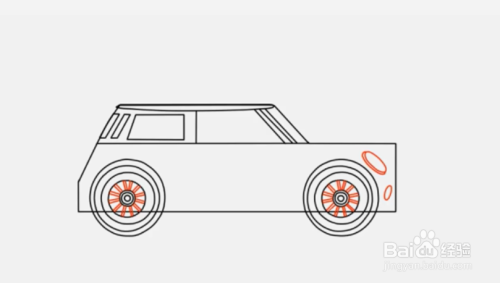 在车轮内添画细节,并在车身前部画两个椭圆作为车灯。