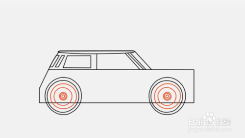 再在车轮内添画不同大小的圆,使车轮更形象。