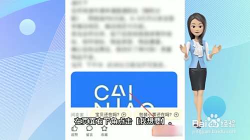 进入宝贝详情页面后,在页面右下角点击【我想要】。