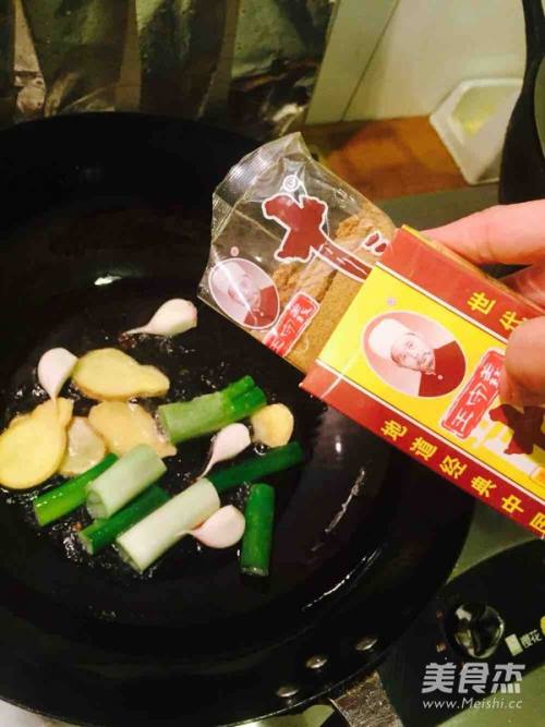 热火加底油…葱姜蒜爆香…加适量十三香…和料酒