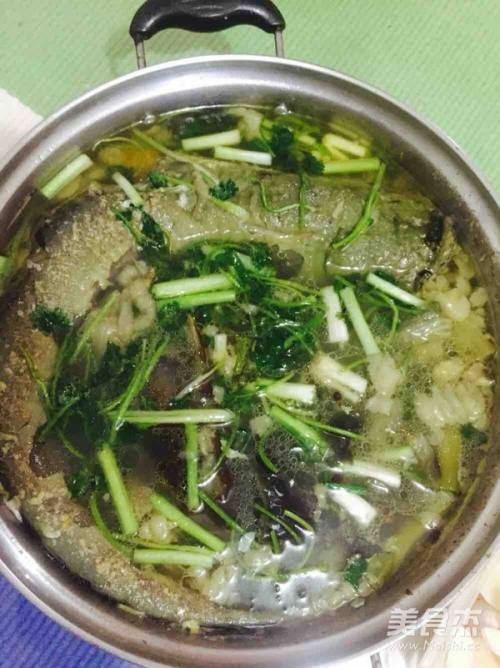开锅后小火加盖炖十五分钟左右…加盐…放入切好的香葱和香菜段…出锅