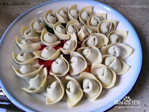 拿一张馄饨皮,放上适量馅,皮子四周沾水。