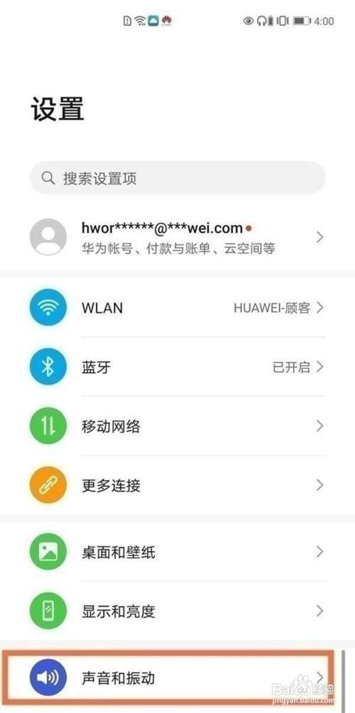 在手机设置菜单中点击【声音和振动】。