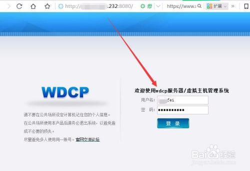 接下来我要讲的是第二种修改dede文件名的方式,那就是通过服务器管理系统进入文件目录进行修改,如果你们的网站有安装wdcp管理系统的话,就可以用了。在浏览器中输入WDCP后台管理地址后登陆到WDCP上。