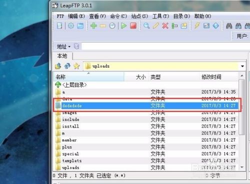 要修改目录dede名称需要用到工具中的ftp软件,使用ftp软件我们就可以连接网站文件存放目录,并对存放的网站文件进行修改删除等操作。大家可以百度搜索LeapFTP在百度软件中心下载该软件。