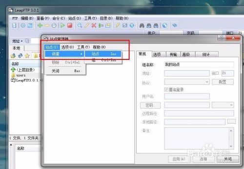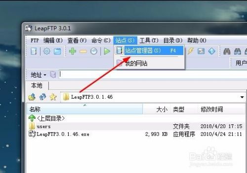 LeapFTP下载完成后是可以直接使用的,双击LeapFTP.exe打开软件,点击软件站点菜单下的站点管理器。然后在站点管理器中选择站点菜单下的新建站点。