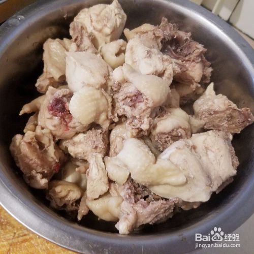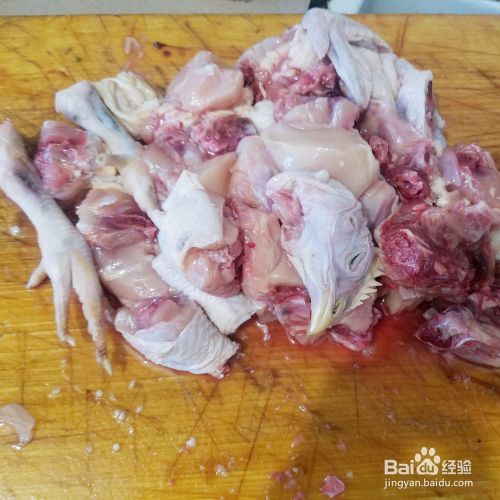 买来的白条小笨鸡洗净,剁成适量大小的块。