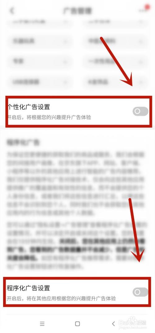 将个性化广告设置与程序化广告设置后的按钮点击关闭即可。
